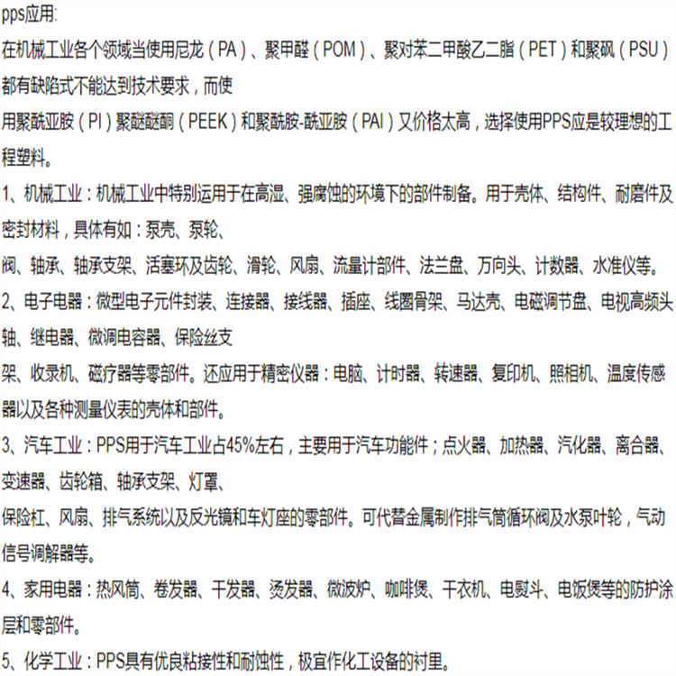 苯硫醚(PPS)树脂是一种具有熔点约280℃的高耐热性能及优良的耐药品性,无需添加阻燃剂即可自熄的高阻燃性的树脂材料。DIC.PPS成型材料是在高度的聚合物技术基础上辅以DIC 的改性材料技术制造而成,具有工程塑料 的特性,以代替金属、热固性树脂为中心被 应用于各种领域。