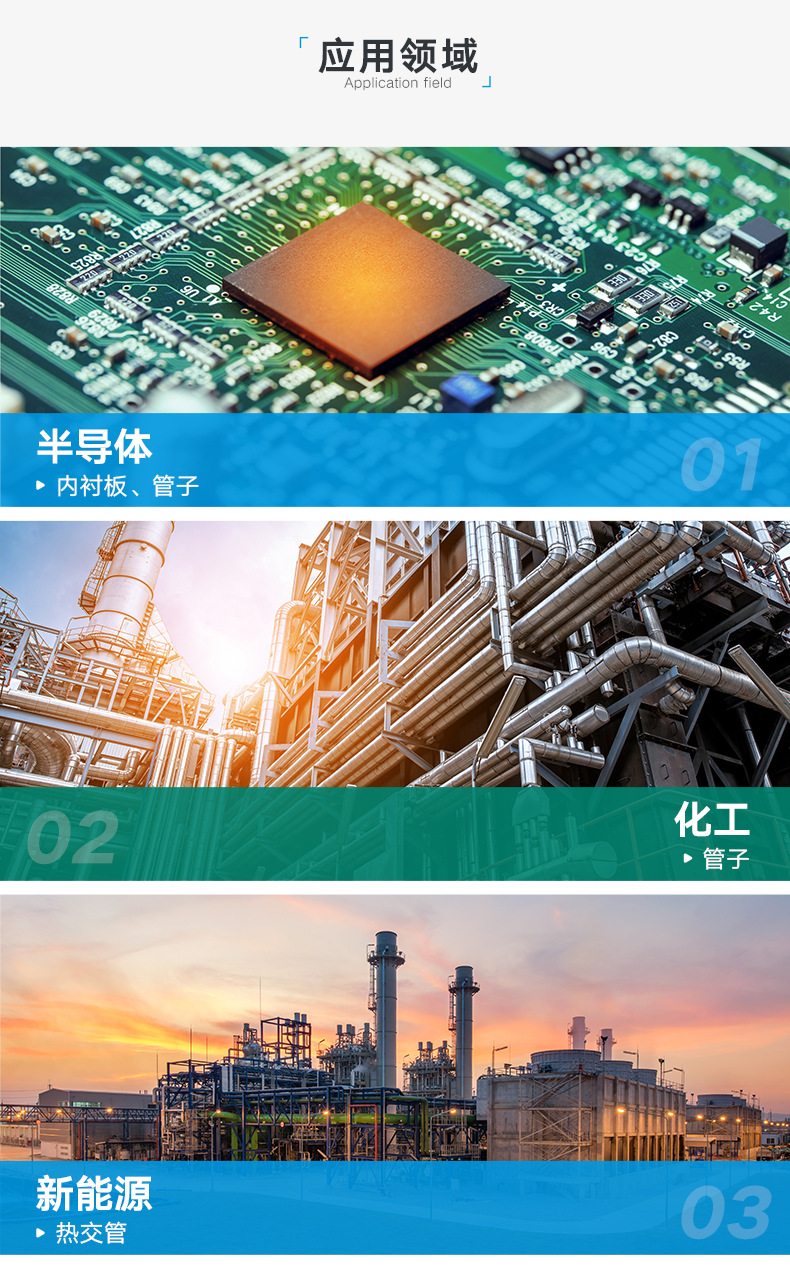 特氟龙 ™ PFA 345的应用包括挤出管、电线和电缆绝缘、注塑零件以及用于波纹管、阀门、配件、管道、泵和其他流体处理组件的化学耐受内衬。